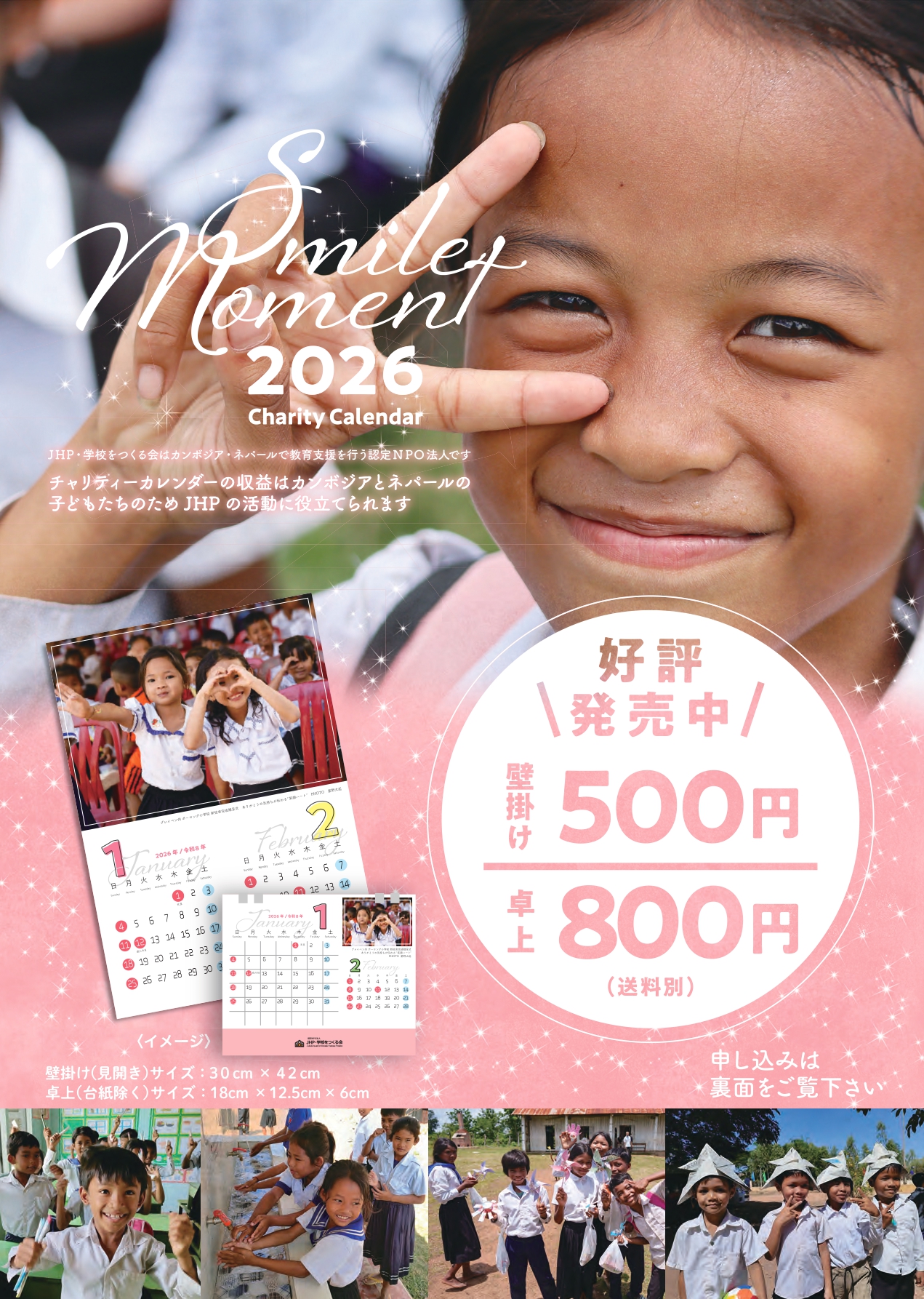 本カレンダーの収益は、そんなカンボジアとネパールの子どもたちのためのJHP教育支援活動に役立てられます。