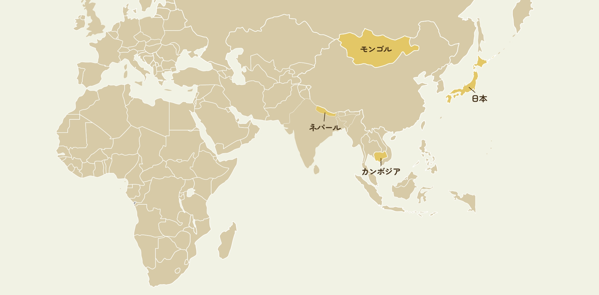 現在、4ヵ国(日本、カンボジア、ネパール、モンゴル)で活動しています。これまでに13ヵ国で活動を行いました。