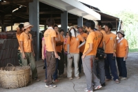 今日は休息日で活動も少なかったので緊張感もなく、ゆったりと過ごしていました。ナンプラー工場はにおいが物凄くて慣れるまではホントに大変でした。ナンプラーはトンレサップ湖で獲れた魚や塩を使って作るそうです。匂いはきつかったけど一口だけナンプラーをもらって味わうと、さっぱりした味でおいしかったです。午後のマーケットではみんなカンボジアでの買い物も慣れてきて、値切り交渉もスムーズにやっていたように思います。今日はお土産として買い物したので大胆に買えてたくさん値引いてもらい、お店の人も喜びました。交渉すると同時にコミュニケーションも取れて個人的にはすごく楽しかったです。明日からは最後のブランコ作り、気を引き締めてがんばります!(文責・大地剛史)