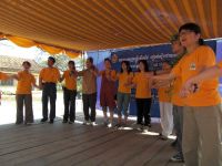 今日の午前中は、コンポンチュナン県コンポントラライ郡サラーレーク第五小学校で行われた、第5回JHP音楽コンテスト・コンポンチュナン県予選を見学しました。この大会は、計6県、101校の生徒たちが優勝を目指して日々練習してきた歌と合奏を披露する県大会の一つです。子どもたちは、ステージに上がりとても緊張していて、顔が硬直してました。けれど、歌い終わってふと笑顔を見せてくれたことが、とても印象に残っています。私たちカレッジ隊も、子どもたちの発表の後、ステージに上がり、「もりのくまさん」、「アラピア」、「幸せなら手をたたこう」を合唱・演奏しました。子どもたちはとても喜んでくれて、一緒に手拍子したり、歌ったりしてくれました。私たちもとても緊張しましたが、練習した成果を発表できて良かったです。