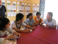 1号車:今日は1号車ドライバーのトンブンさんに車中でいくつか質問をしてみました。彼は、プレイヴェン州出身で、54歳、妻と4人の子どもがいます。1980〜90年頃まで貿易や商業にかかわる政府機関で働き、そこで英語を覚えたそうです。賃金が安く、子どもを育てるのも難しかったため、ドライバーになりました。今は中古車を売る仕事もしているそうです。例えば、7000ドルで車を仕入れ、500ドルかけて塗装、修理をし、8000ドルで売ることができるそうです。今日私たちの車はセンソック小から戻る途中パンクをしてしまいましたが、トンブンさんは慣れた手つきでわずか5分間でタイヤ交換、その早業に驚かされました。JHPの招待で、2005年に日本に一度訪れたことがあるそうで、印象に残っているのは、佐伯理事の家に招待されたときの熊本だそうです。ちょうど3月の終わり、桜の花びらが散る様子を見て、雪を見たことのなかった彼は、「雪だ!雪だ!」と狂喜したそうです。カンボジアのお勧め料理は、コーサイッチュルーク(豚と卵の煮込み)とチャーボンラエ(野菜炒め)です。皆さん是非、お試しあれ!!!(加藤伸治)