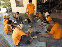 また反省点として、道具の質の管理が挙げられます。本日カレッジ隊は、銀色のドリルとおろしたてのドリルの刃を使って作業しました。その結果、あっという間に穴が開き、前日までの作業とまるで違いました。この経験を元に、資材調達係にお願いして、従来、カンボジアでは入手が不可能と思われていた、木工用ドリルの刃も4本新品を調達することができました。ドリルの刃(4ドル)を、入手していたら、ドリル(50ドル)2台を壊す事が無かったし、もっと早い時点でお願いしておけば、作業も効率的に出来たかもしれないと思いました。(深瀬和彦)