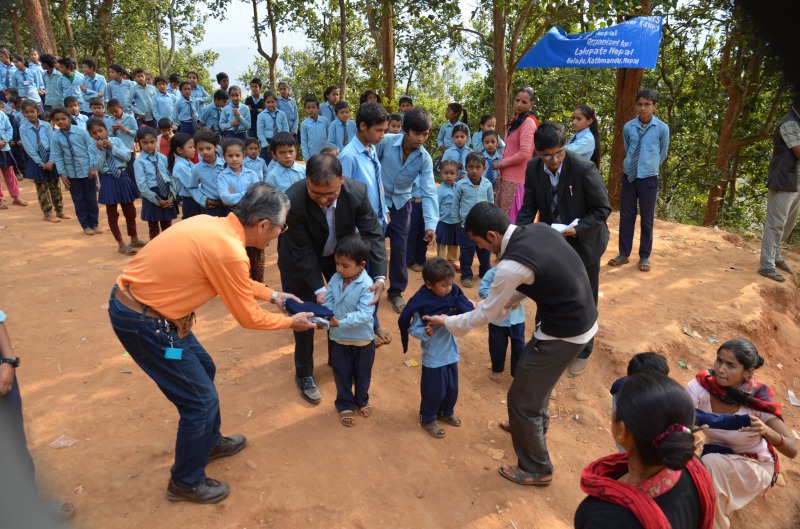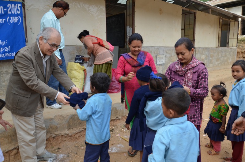 『地震の生存者は、地震前のレベルに生活を戻すためには膨大なものが必要なのに対して、ほとんど何も持っていませんでしたが、これらの日常必需品を支援することにより、家族がその子どもを学校に通わせることができるようになりました。特に、学用品の配布は、生徒の幸せに計り知れない効果がありました。地震の後、多くの生徒の制服は瓦礫の下に埋まってしまいました。セーターや帽子といった防寒着の配布は、冬場の健康維持にも重要な役割をもたらしました。また、均質な洋服は、経済的階級、民族、カーストに関わらず平等な感覚を子ども達に啓発することができました』