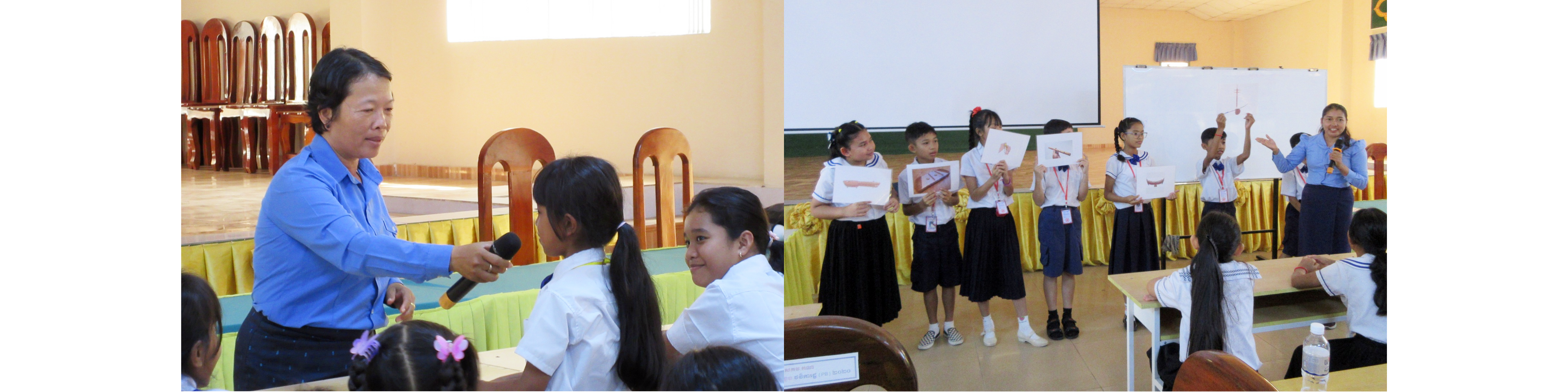 模擬授業では、カンダール州教員養成校附属小学校の1年生から6年生までの児童が授業に参加しました。